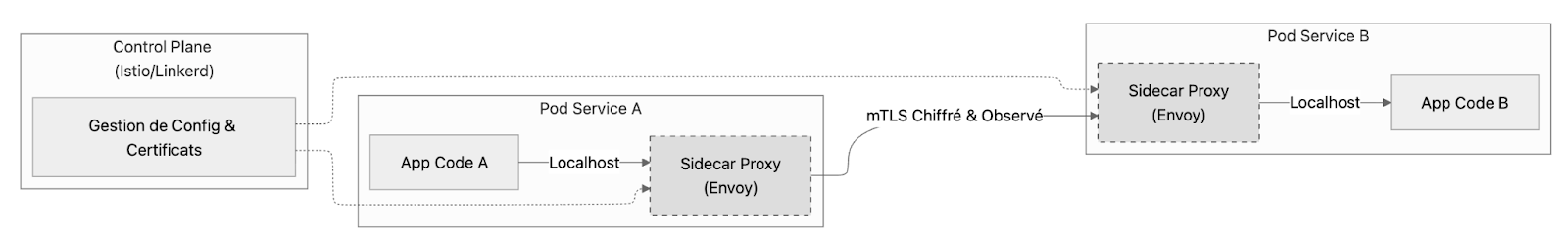 - mTLS automatique : Chiffrement de bout en bout sans code applicatif